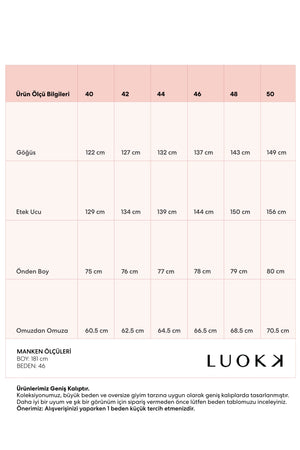 Ürün Ölçü Bilgileri | 40 | 42 | 44 | 46 | 48 | 50 |