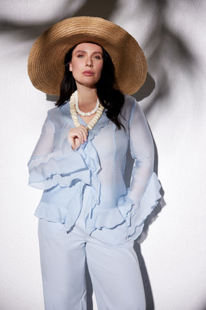 ALLEIA Semi-Sheer Plus Size Blue Blouse