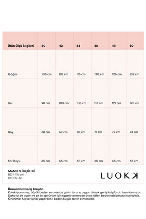 | Ürün Ölçü Bilgileri | 40 | 42 | 44 | 46 | 48 | 50 |