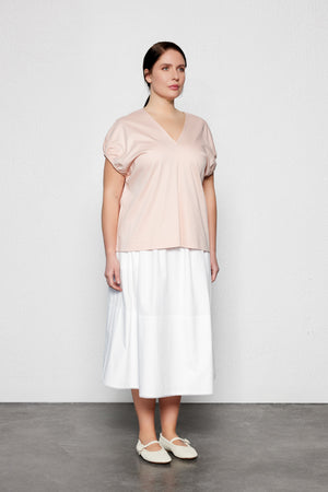 Among women’s plus size blouse options, the ANKO Ruched Sleeve Plus Size Blush Blouse stands out with its elegant design. The V-neckline beautifully highlights the neckline, while the short sleeves and ruched details at the cuffs add a modern touch. Its lightweight structure and relaxed fit provide all-day comfort.