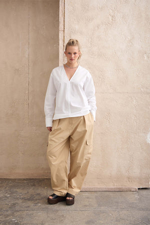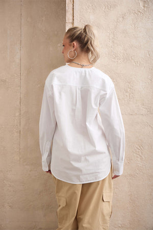 ANNETTE V Yaka Poplin Gömlek Beyaz