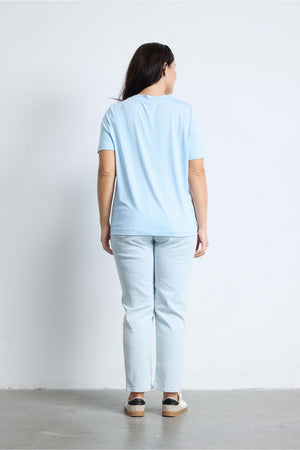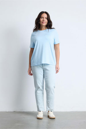 BRADLEY Crew Neck Plus Size Basic T-shirt - Light Blue