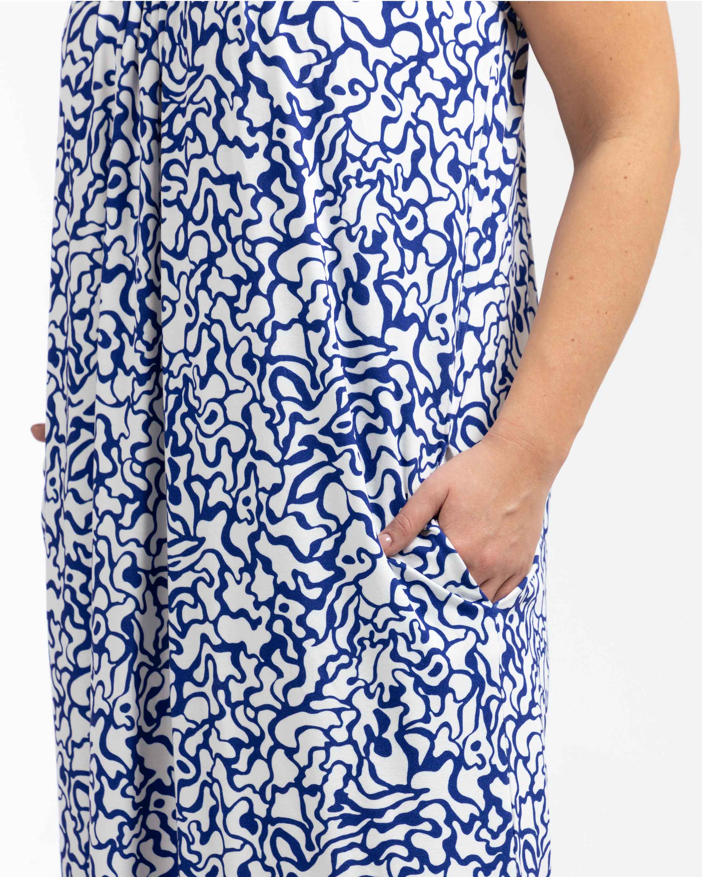 The CARROL plus size midi dress is a summer wardrobe essential. Adjustable straps offer personalized comfort, while the gathered bust detail adds a touch of elegance. The back tie detail brings visual interest, and the stretchy fabric ensures all-day ease. Composed of 95% vortex viscose and 5% elastane, it offers both breathability and flexibility. This dress brings a vibrant and free-spirited style to anyone seeking plus size options. The side slit adds movement to your steps, while the midi length creates a modern silhouette. Among plus size dress models, it stands out with its patterns and feminine details. Also suitable for maternity wear, making it a versatile choice for different life stages.