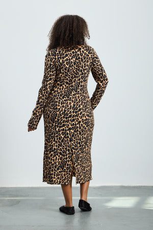 EMPIRE Leopard Print Long Sleeve Plus Size Dress