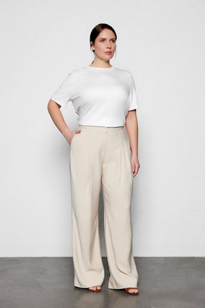 Combining comfort and elegance, the HANIA Wide-Leg Plus Size Stone Pants stand out in the plus size women’s pants collection with their modern and fluid silhouette. The high-rise waist provides a balanced fit, while the wide-leg cut allows for freedom of movement and adds a graceful flow to the overall look.