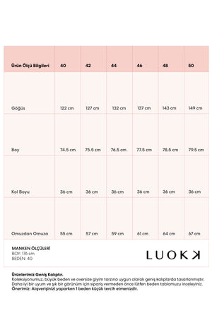Ürün Ölçü Bilgileri | 40 | 42 | 44 | 46 | 48 | 50 |