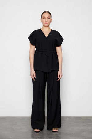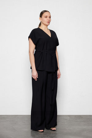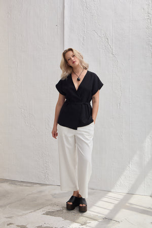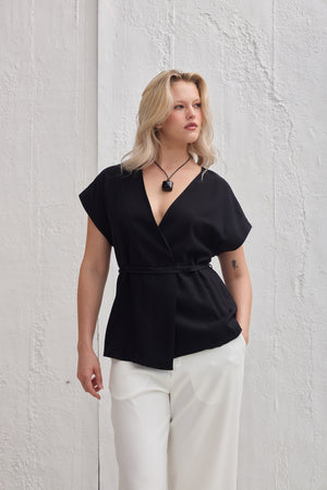 A standout among plus size women’s vests, the HYLDA Black Wrap-Front Plus Size Vest brings an elegant touch to any outfit. The cross-front closure highlights its sophisticated style, while the detachable self-tie belt allows for versatile wear. Its sleeveless design makes it ideal for layering across seasons, and the relaxed fit ensures all-day comfort.