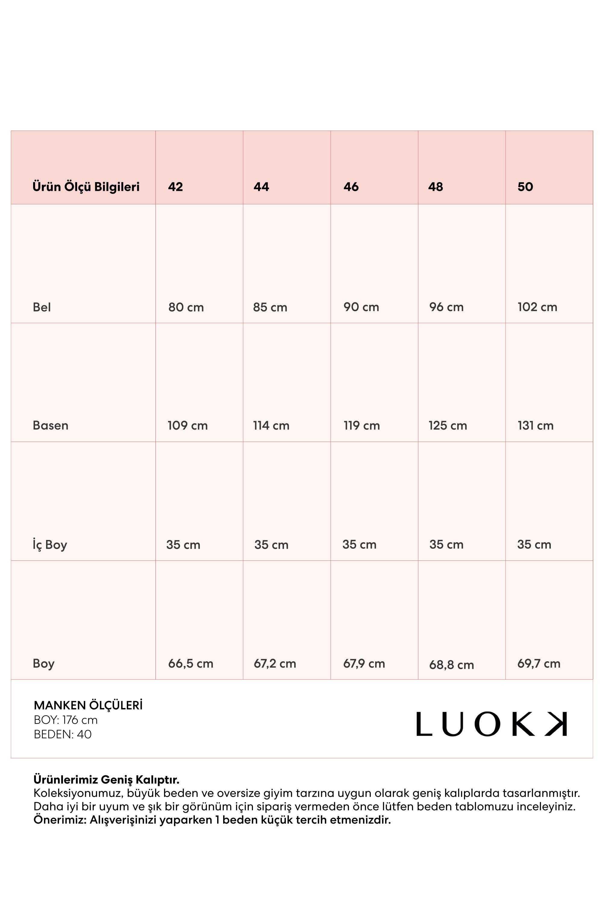 | Ürün Ölçü Bilgileri | 42 | 44 | 46 | 48 | 50 |