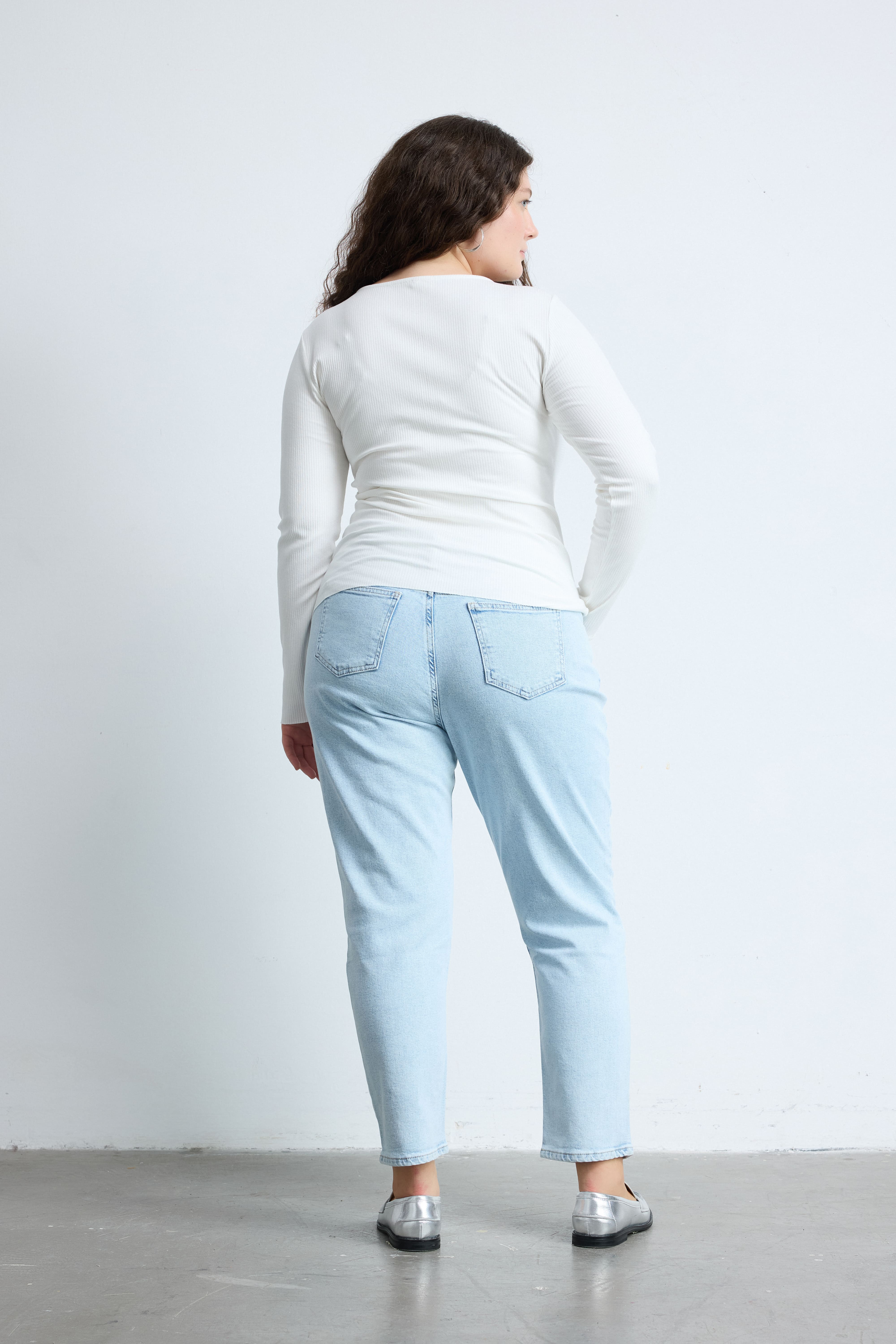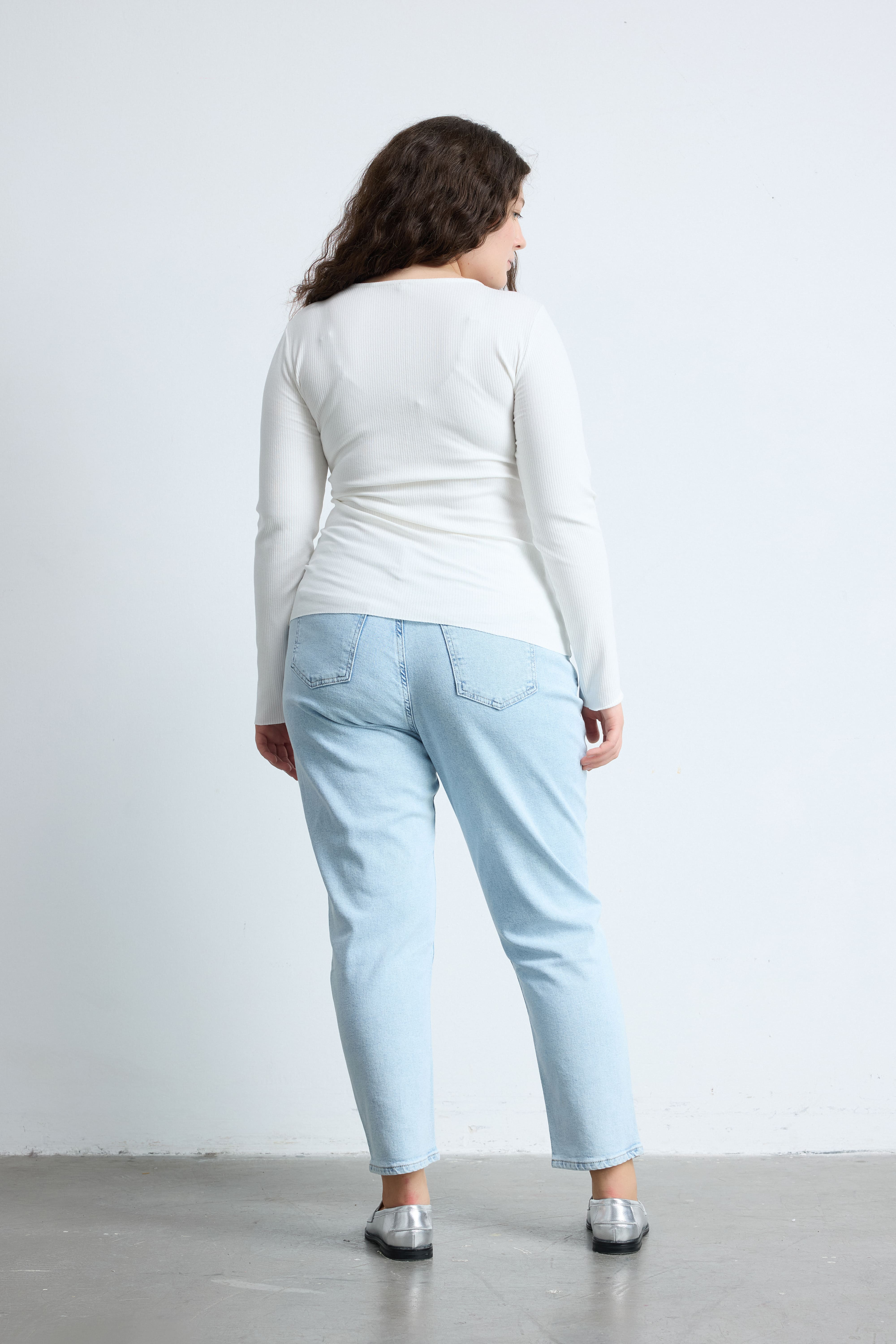 With its chic and practical details, the INES V-Neck Plus Size Cream Blouse offers a timeless sense of style. The fitted silhouette creates an elegant posture, while the knotted detail at the bust adds movement and visual interest. The long sleeves and V-neckline bring a modern and feminine touch to the design.