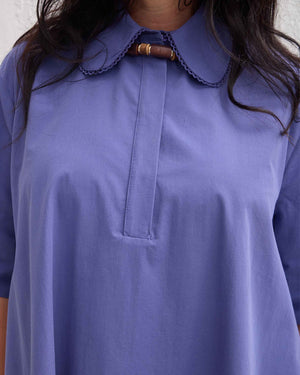 Offering timeless elegance in plus size women’s dresses, the MAGNUS Purple Mini Shirt Plus Size Dress stands out with its modern and sophisticated design. The eyelet-trimmed Peter Pan collar and short sleeves add a feminine touch to the classic shirt dress style. Its A-line silhouette gently skims the body, while the relaxed fit ensures comfort throughout the day. Functional side pockets enhance its practicality, making it suitable for both casual and special occasions.