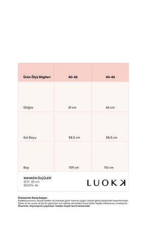 Ürün Ölçü Bilgileri | 40-42 | 44-46 |