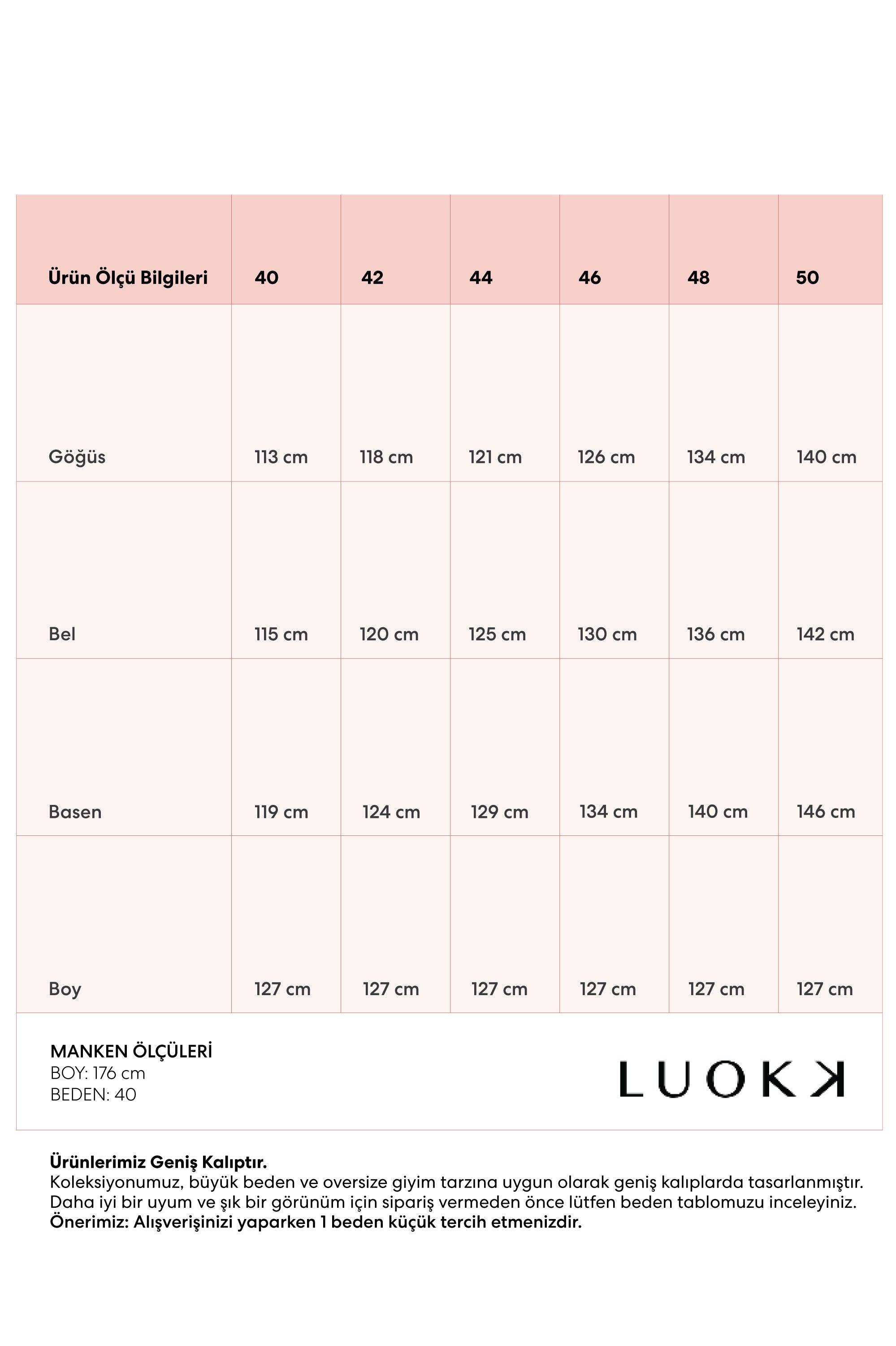 Ürün Ölçü Bilgileri | 40 | 42 | 44 | 46 | 48 | 50 |