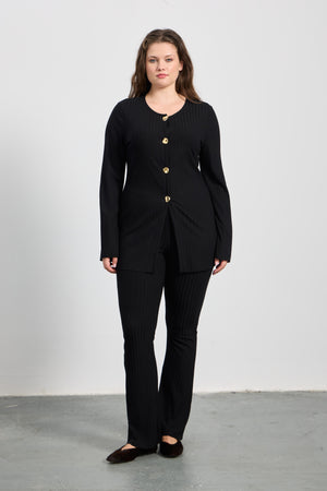 AW 25-26 koleksiyonunun dikkat çekici parçalarından Shannon, sade formuna zarif detaylar ekleyerek modern bir görünüm sunuyor. Yuvarlak yaka tasarımı klasik bir duruş sağlarken, kol uçlarındaki yırtmaç ve gold düğme detayları bluzu sofistike bir stile taşıyor. Üste oturan kalıbı vücudu zarifçe kavrarken, esnek kumaşı gün boyu konfor sunuyor.