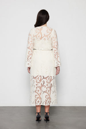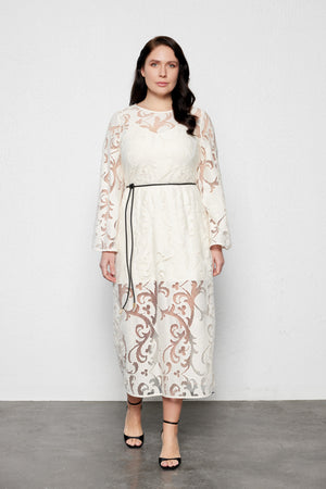 SOLEIL Plus Size Midi Lace Dress - Cream