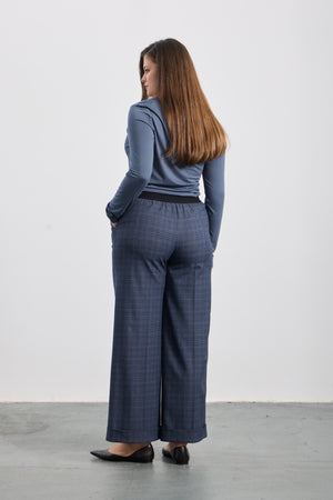 TALSIE Ekoseli Geniş Paça Pantolon Ekose
