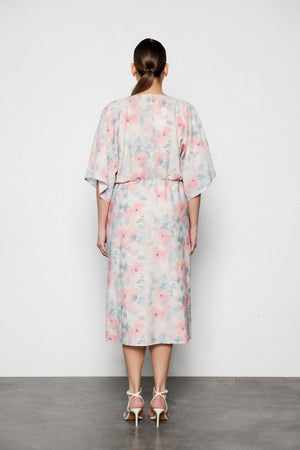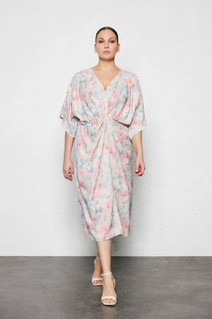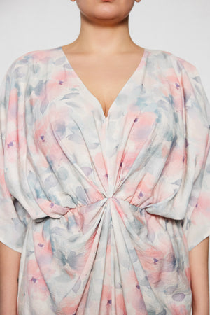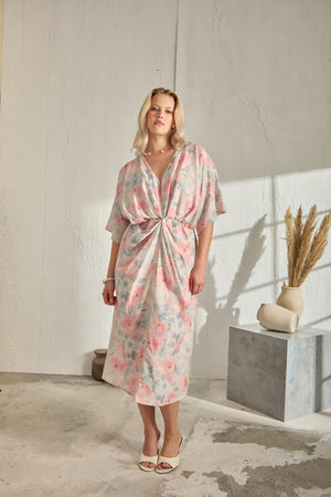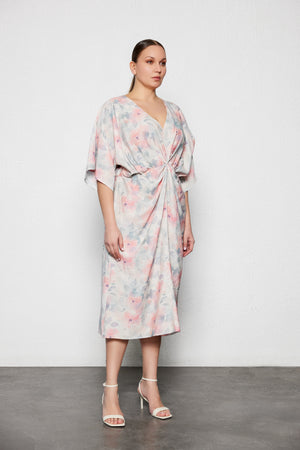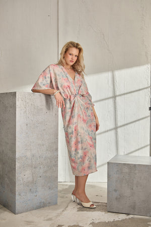 The UTICA V-Neck Printed Midi Plus Size Dress blends elegance and comfort, making it a standout among women’s plus size dress options. Featuring a flattering V-neckline and a front pleated knot detail, this design adds graceful movement and visual interest. The three-quarter sleeves offer a modern touch, while the asymmetric hem creates a dynamic, flowing silhouette. Its linen-blend fabric delivers a naturally breathable and refreshing feel.