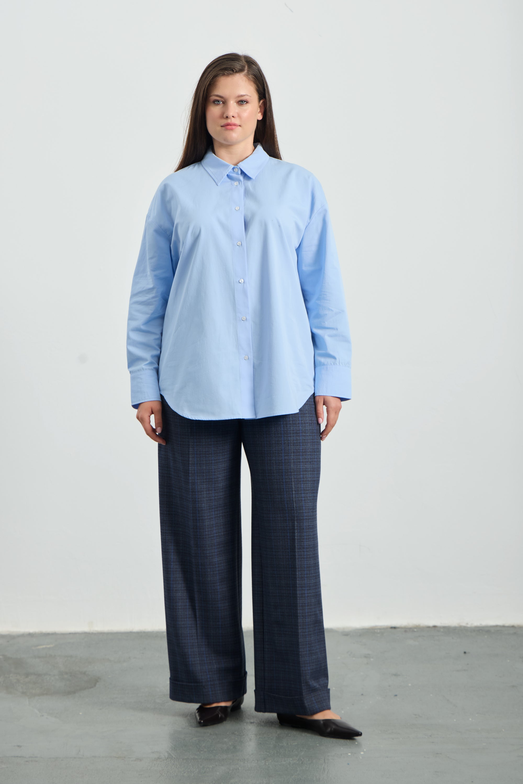 Klasik çizgileri modern bir kesimle buluşturan ADA Büyük Beden Mavi Poplin Gömlek, rahat ve şık bir görünüm sunuyor. Oversize yapısı sayesinde vücuda ferah bir his kazandırırken, %100 pamuklu kumaşı gün boyu konfor sağlıyor. Klasik yaka detayı, zarif bir duruş katıyor ve uzun kollu ve önü düğmeli tasarımı farklı kombinlerle kolayca uyum gösteriyor.