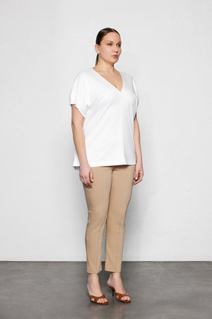 Zarif tasarımı ve konforlu kesimiyle bayan büyük beden bluz koleksiyonlarında öne çıkan ANKO Kolu Büzgülü Büyük Beden Beyaz Bluz, günlük şıklığı rahatlıkla buluşturuyor. V yaka detayı boyun hattını zarif bir şekilde öne çıkarırken, kısa kolları hareket özgürlüğü sunuyor. Kol uçlarındaki büzgü detayı ise tasarıma modern bir dokunuş katıyor.