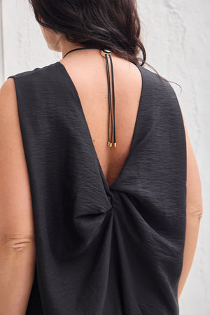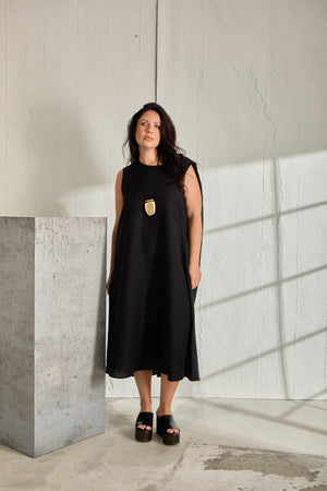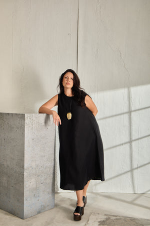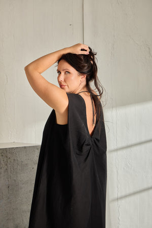 ARMIA Büyük Beden Sırtı Burgulu Siyah Midi Elbise