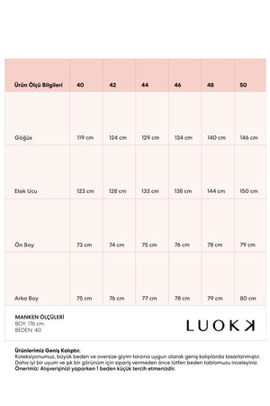 | Ürün Ölçü Bilgileri | 40 | 42 | 44 | 46 | 48 | 50 |