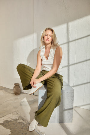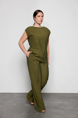 CANDIDE Geniş Paça Büyük Beden Haki Pantolon