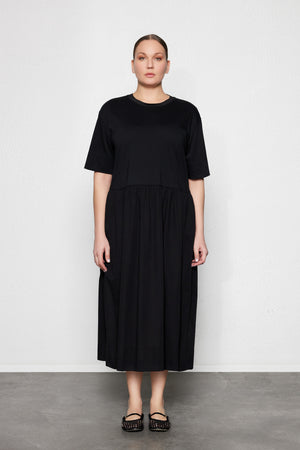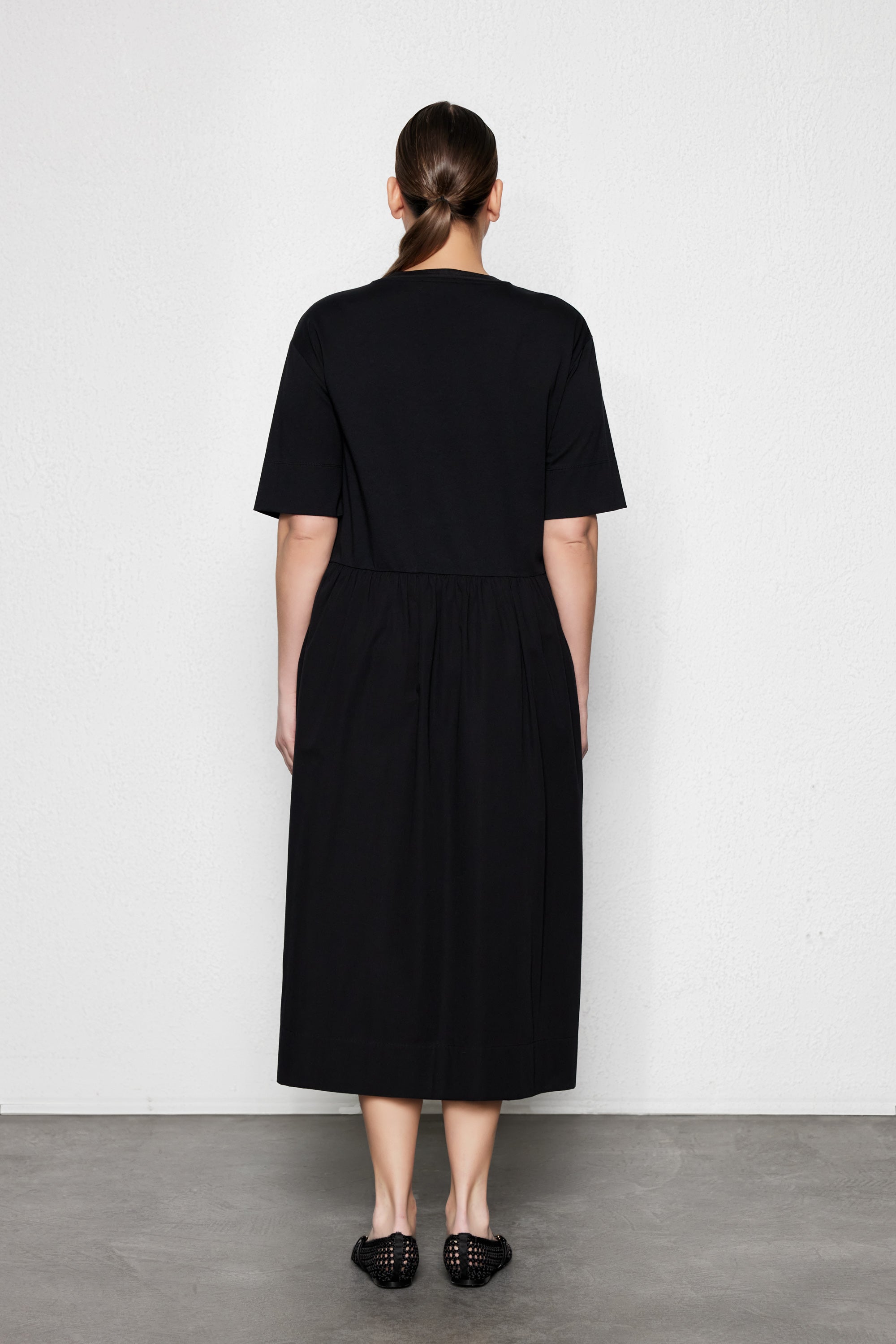 CHIARA Kontrast Panelli Büyük Beden Siyah Midi Elbise