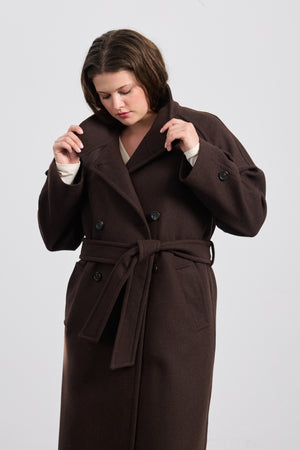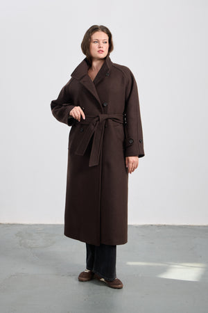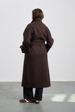 CIMON Yünlü Dik Yaka Uzun Kaban Kahverengi