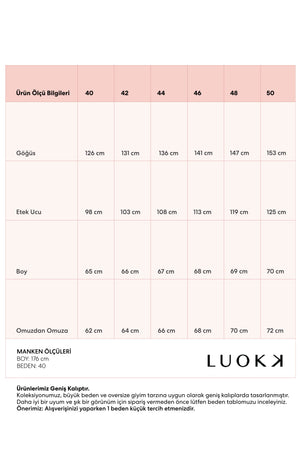 | Ürün Ölçü Bilgileri | 40 | 42 | 44 | 46 | 48 | 50 |