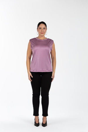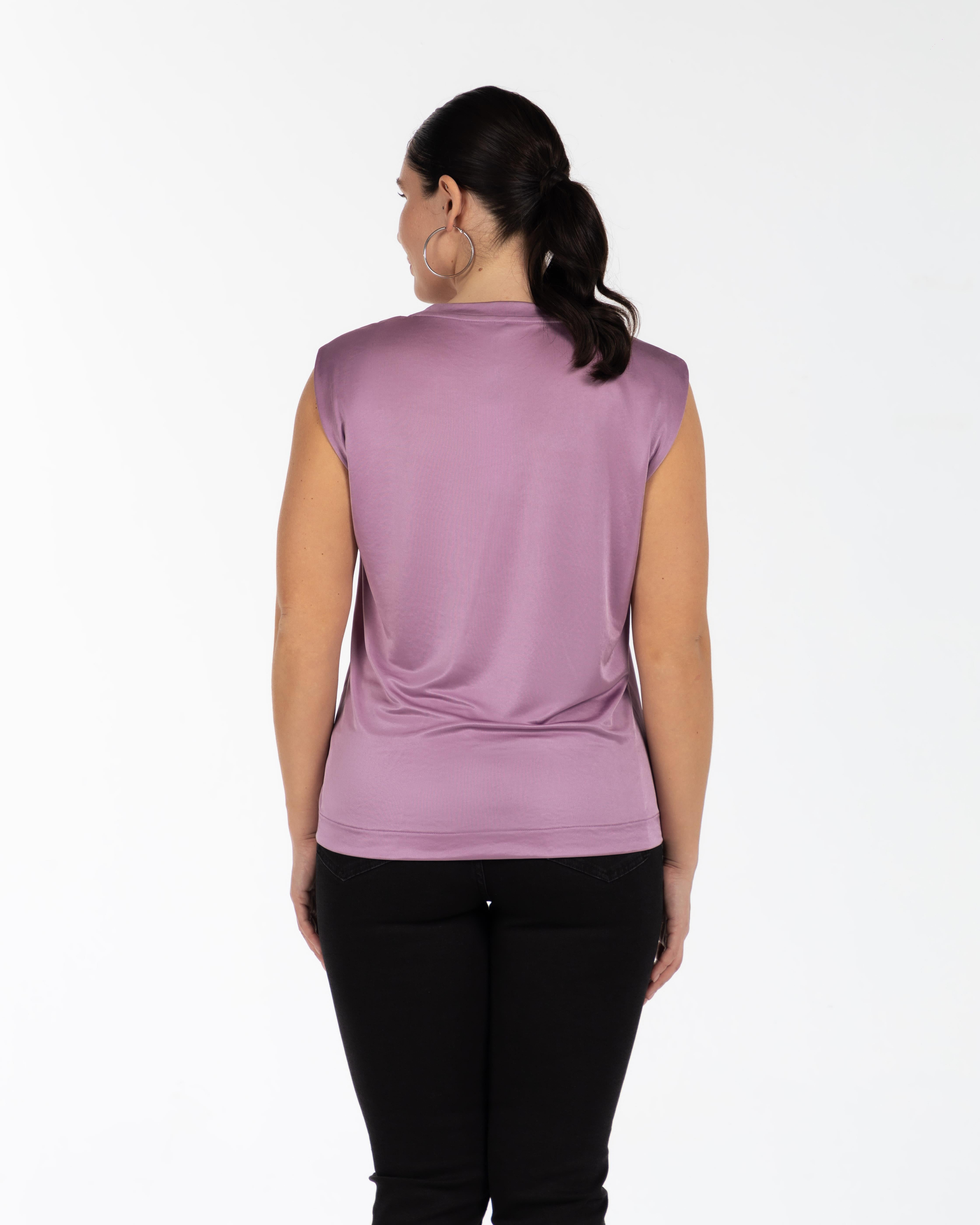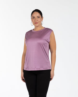 DOLLY Bisiklet Yaka Düşük Omuzlu Büyük Beden Kolsuz Parlak T-shirt Lila