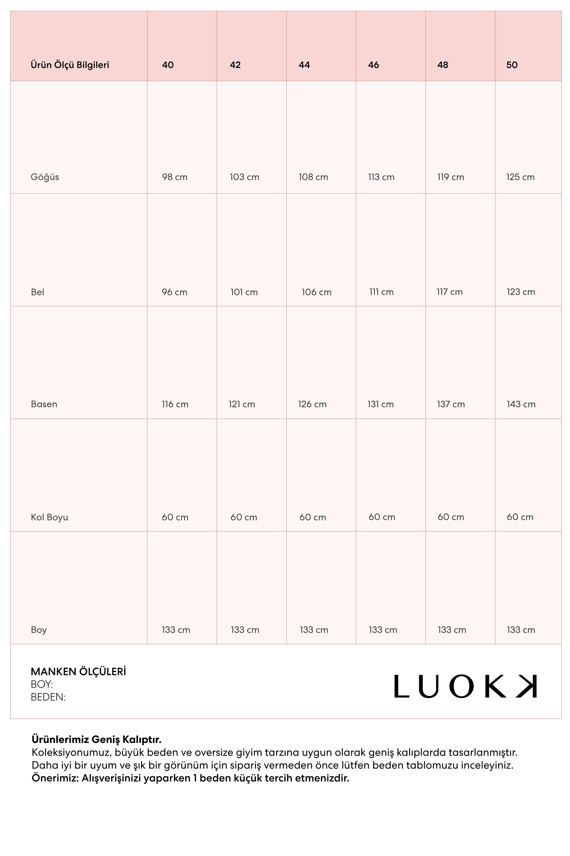 | Ölçüler | 42 | 44 | 46 | 48 | 50 |