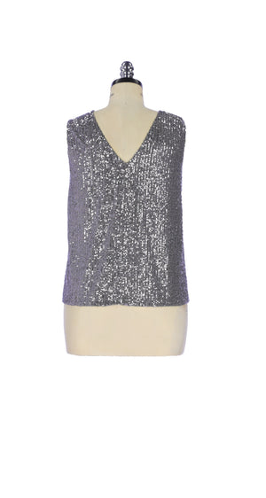 DORRIE Yuvarlak Yaka Rahat Kalıp V Yaka Detaylı Payetli Bluz Gri