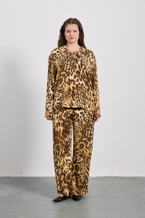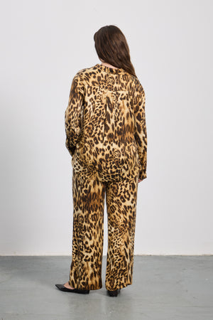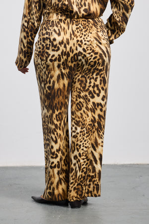 FINGSTON Leopar Desenli Geniş Paça Saten Pantolon Desenli