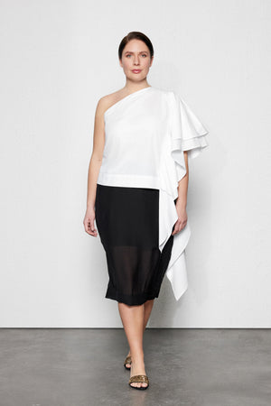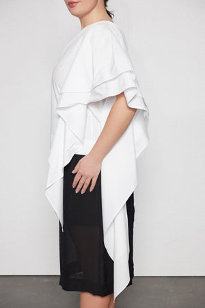 FLAME Büyük Beden Tek Kollu Bluz Beyaz