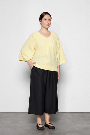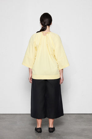 Truvakar kollu, rahat kalıp, ensede bağlama detaylı, kalın etek ucu dikişli, büzgülü U yakalı poplin bluz. Büyük beden ve hamile giyime uygundur. Kumaş içeriği : %100 Pamuk Manken Boyu: 1.76 cm Manken Bedeni: 40