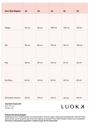 | Ürün Ölçü Bilgileri | 42 | 44 | 46 | 48 | 50 |