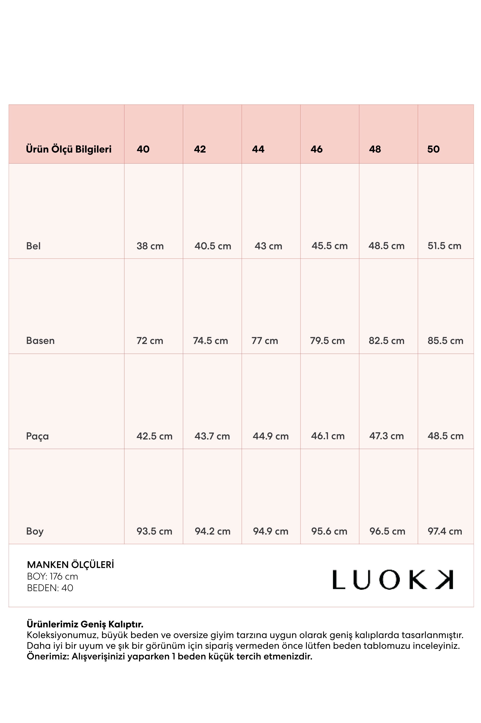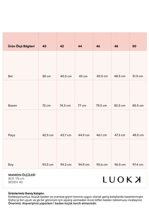 Ürün Ölçü Bilgileri | 40 | 42 | 44 | 46 | 48 | 50 |