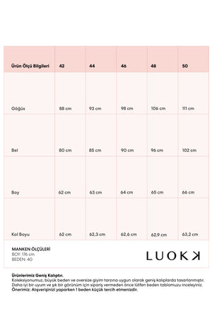 | Ürün Ölçü Bilgileri | 42 | 44 | 46 | 48 | 50 |