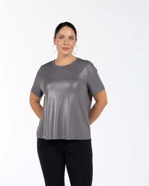 JASMINE Bisiklet Yaka Varak Baskılı Büyük Beden T-shirt Antrasit