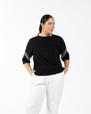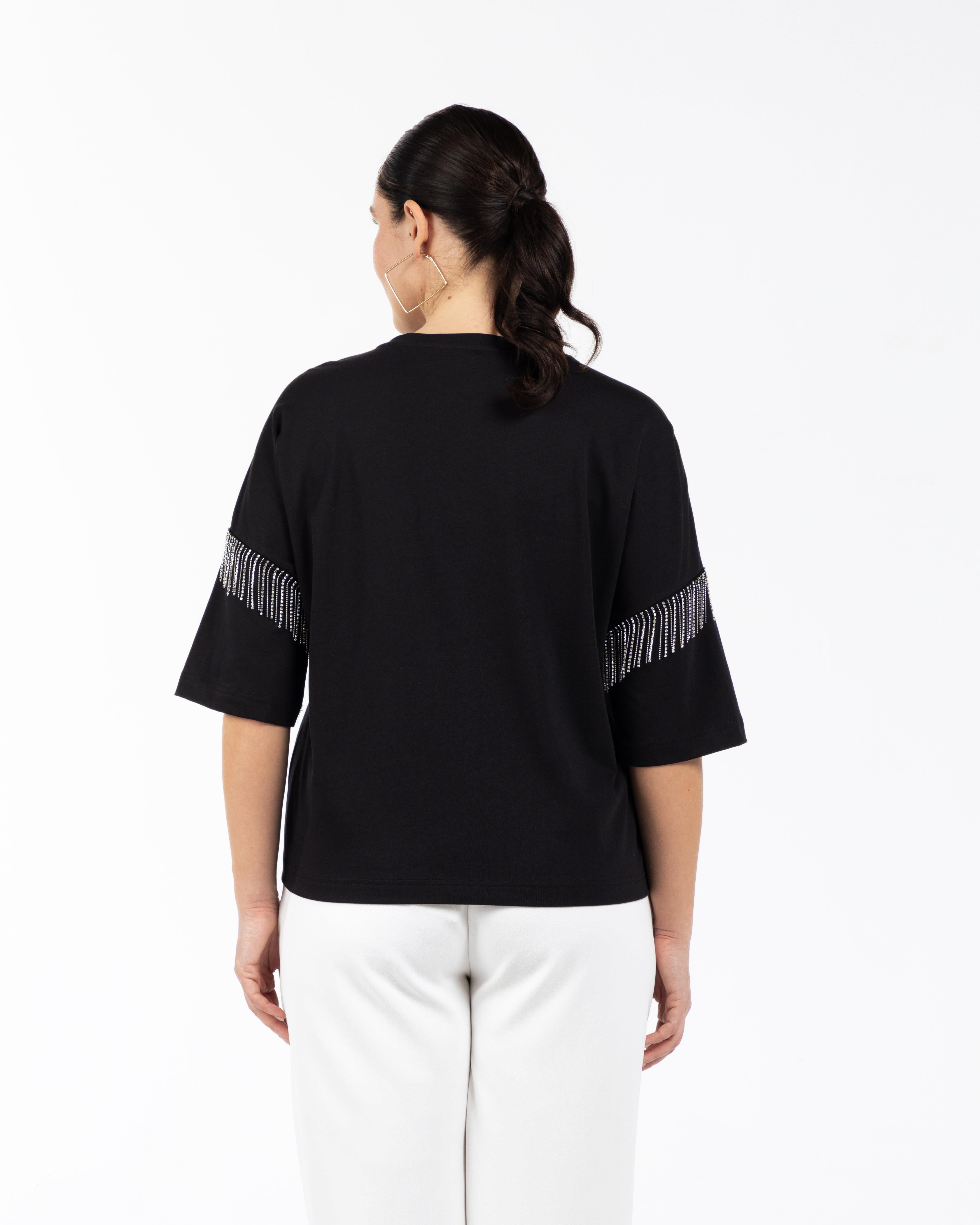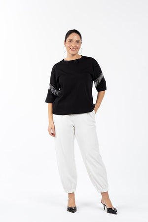 Product JOAN Yuvarlak Yaka Taşlı Zincir Detaylı %100 Organik Pamuk Büyük Beden Beyaz T-Shirt Siyah - https://www.luokk.co/products/joan-yuvarlak-yaka-tasli-zincir-detayli-100-organik-pamuk-buyuk-beden-beyaz-t-shirt-siyah