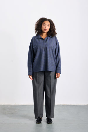 AW2526 Büyük beden gömlek, klasik ekose desenini polo yaka tasarımıyla birleştirerek zamansız ve modern bir stil sunuyor. Düğmeli önü ve uzun kollu manşetli yapısıyla ofis stilinden hafta sonu kombinlerine kadar geniş bir kullanım alanı sağlıyor. Rahat kalıbı ve esnek kumaşı sayesinde vücut hatlarını sıkmadan konforlu bir deneyim sunarken, %62 polyester, %33 viskon ve %5 elastan içeriğiyle hem dayanıklılık hem de yumuşaklık sağlıyor.