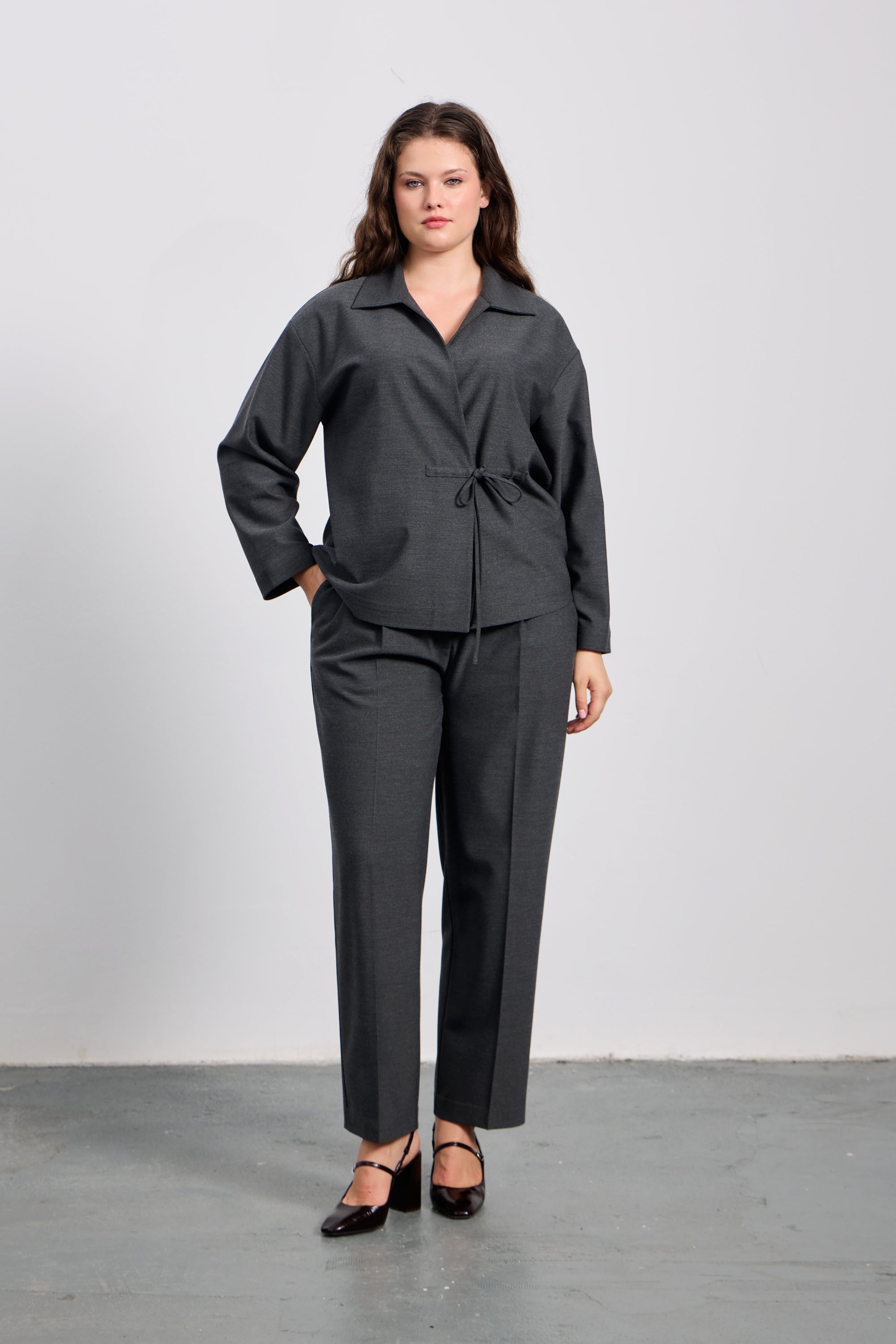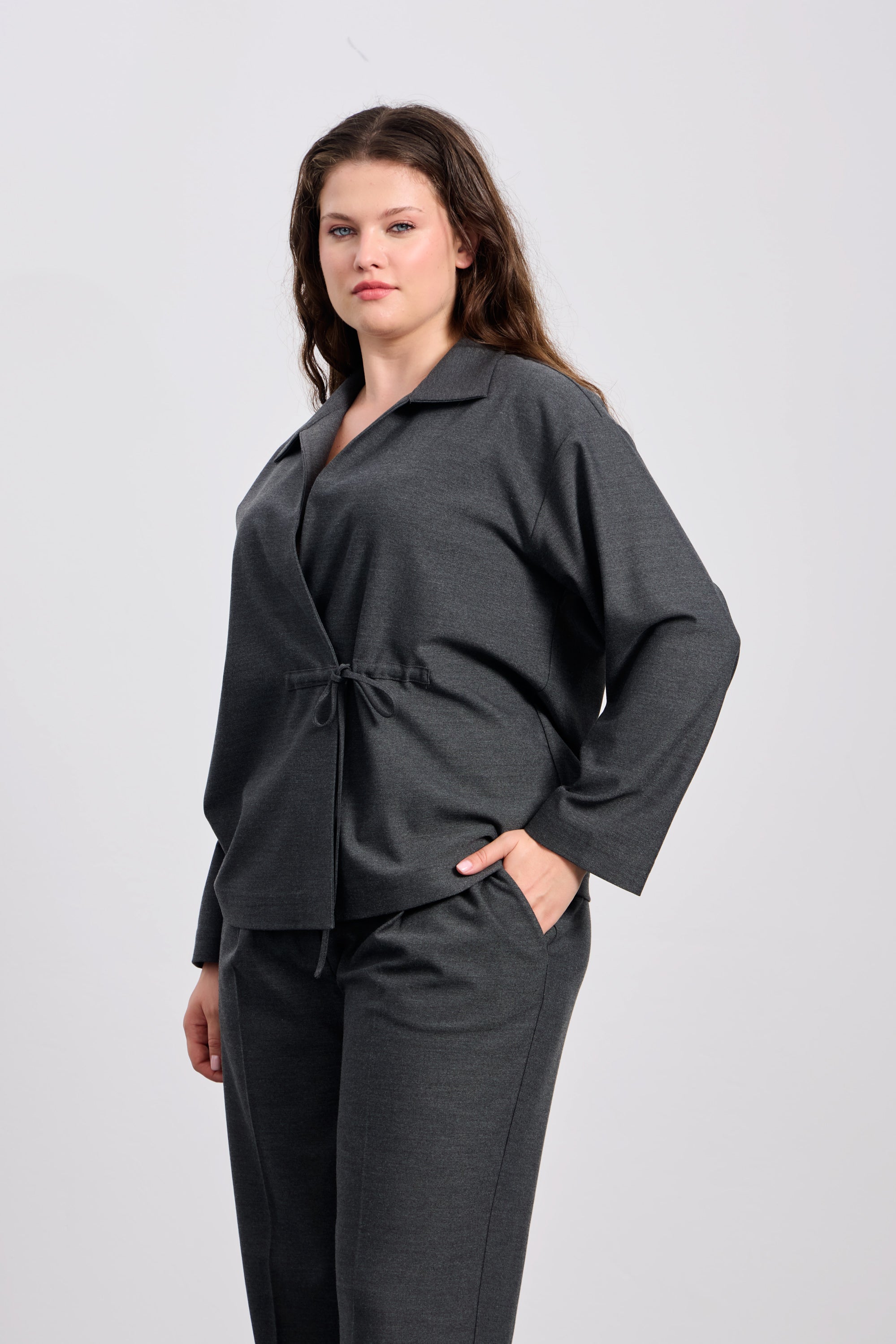 KUKA Bağlamalı Kısa İnce Ceket Gri