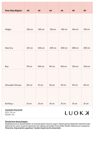 | Ürün Ölçü Bilgileri | 40 | 42 | 44 | 46 | 48 | 50 |