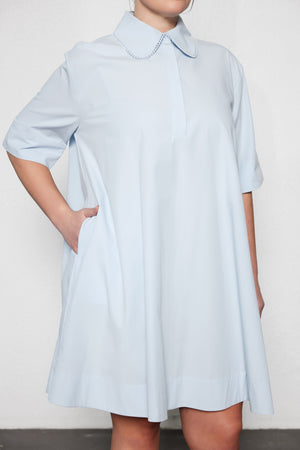 MAGNUS Büyük Beden Buz Mavi Mini Gömlek Elbise