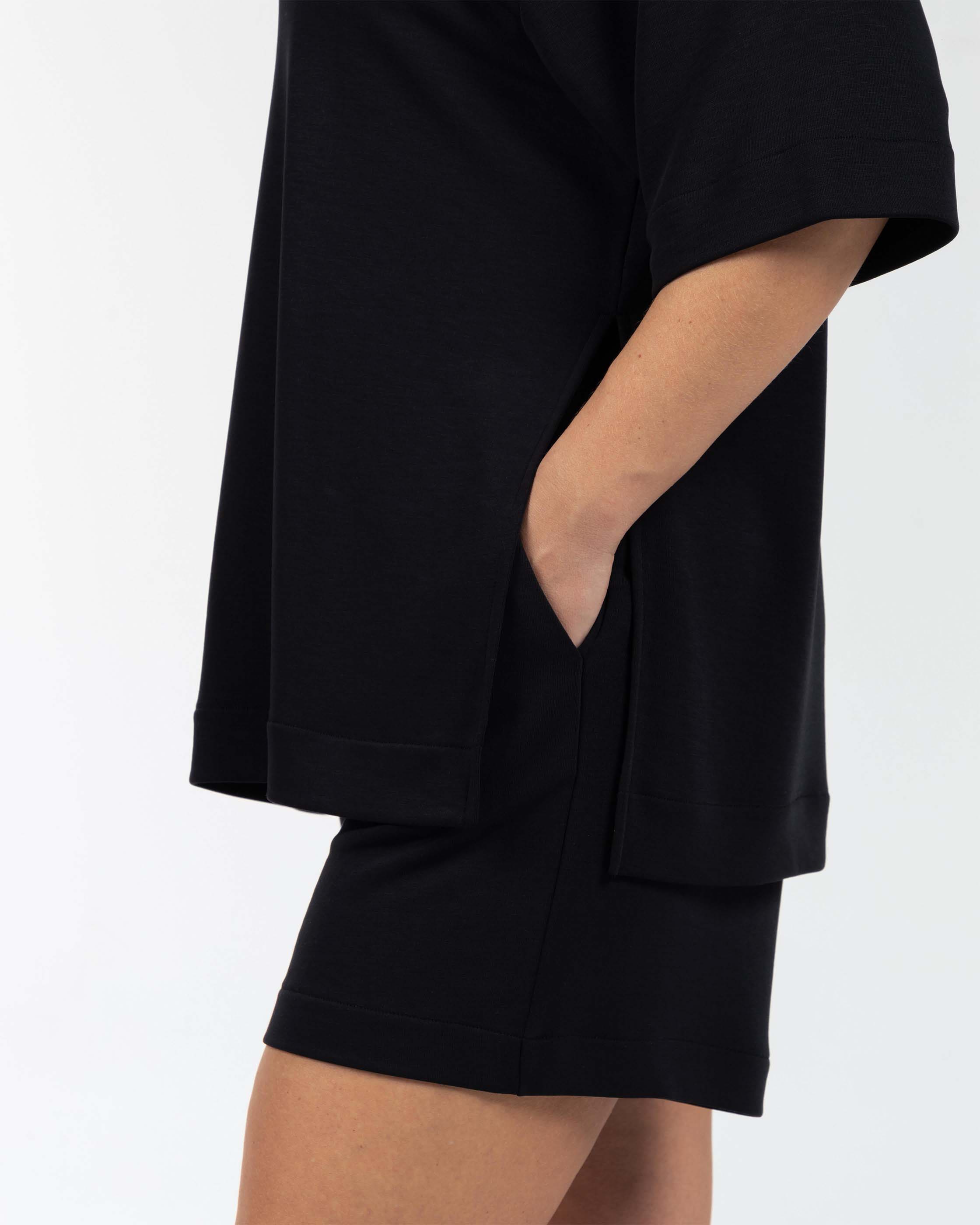 MARVIN Bisiklet Yaka Yırtmaçlı Oversize Büyük Beden T-shirt Siyah