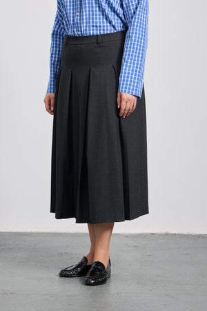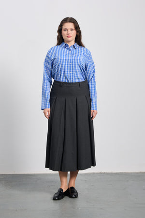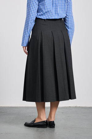 AW 25-26 koleksiyonunun sofistike parçalarından Mikaela, zarif detaylarıyla klasik midi etek formuna modern bir yorum kazandırıyor. Kutu pileli tasarımı hareketli bir siluet oluştururken, kemer halkalı bel bandı ve içten düğmeli, kopçalı yapısı belde kusursuz bir duruş sağlar. Yandaki gizli fermuar kapaması pratik bir kullanım sunarken, astarsız yapısı hafiflik kazandırır.