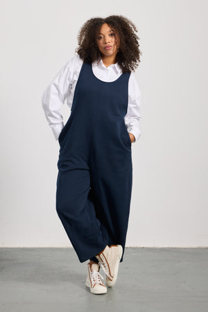 MORGANE Bisiklet Yaka %100 Pamuk Büyük Beden Askılı Tulum Lacivert