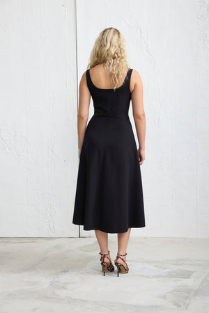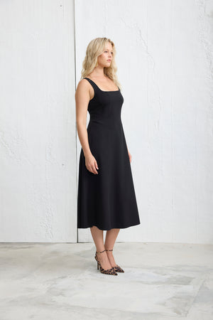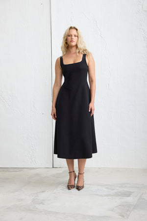 MORINA Kare Yaka Midi Elbise Siyah