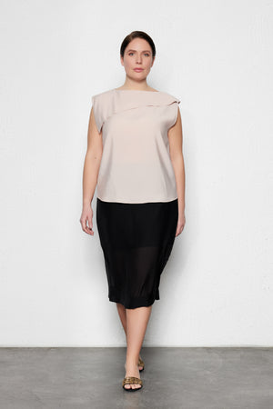 Bayan büyük beden bluz seçenekleri arasında zarif ve modern bir alternatif sunan ODIE, kayık yakası ve kolsuz tasarımıyla şıklık ve rahatlığı bir araya getiriyor. Sırt kısmındaki V kesim ve biye askı detayı, hareketli ve özgün bir görünüm sağlarken, dökümlü dokusu vücuda nazikçe uyum sağlayarak gün boyu konfor sunuyor. Şıklığı ön planda tutanlar için büyük beden kadın bluz koleksiyonuna eklenecek bir parça oluyor.