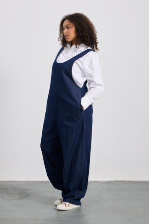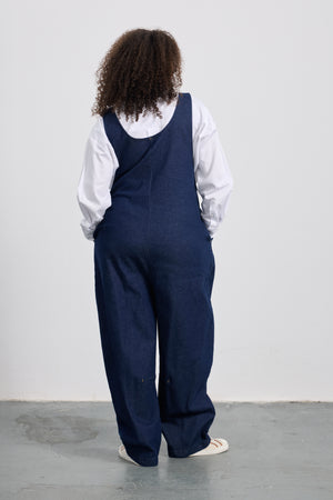 PHARRELL Büyük Beden Askılı Koyu Mavi Jean Tulum