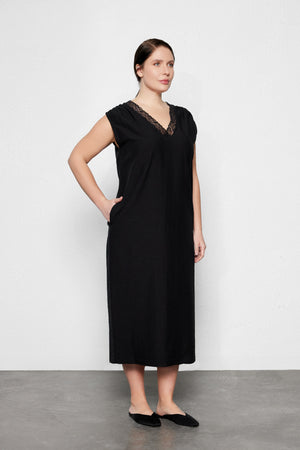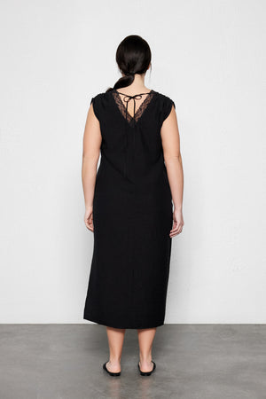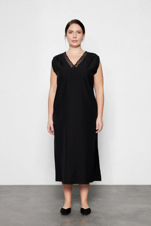 ROSIE Büyük Beden Dantel Detaylı Siyah Midi Elbise